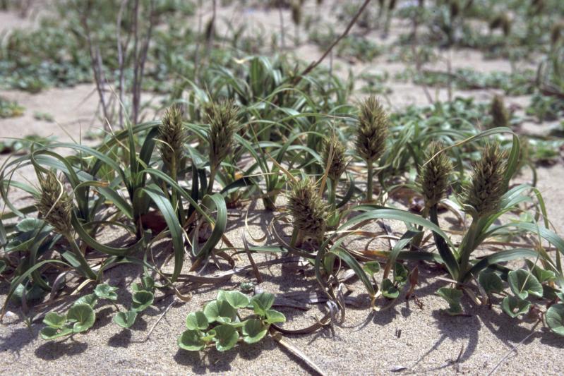 | 種の概要 | 砂の移動が激しく,海からの塩分や強風の影響を強く受ける砂丘最前線の不安定立地に生育する。群落高0.2程度で,コウボウムギが優占し,ハマヒルガオ,ハマニガナ,ネコノシタなどが混生する。ケカモノハシを欠くことでケカモハシ群落と区別される。コウボウムギ-ネコノシタ(ハマグルマ)群集。 |