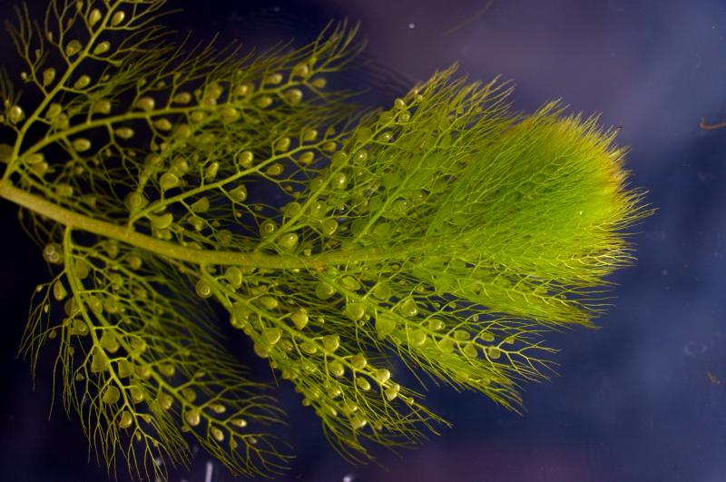 | 種の概要 | ため池などに生える多年生の水中植物で,植物体全体が浮遊する。また,食虫植物であり,細かく裂けた葉の一部は捕虫嚢に変形している。 |