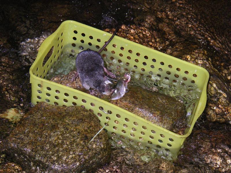 | 種の概要 | 中型のネズミくらいの大きさで,前後肢の両側の剛毛が水かきの働きをする。主に森林内の山地渓流で,餌となる水生昆虫や小魚の豊富な環境に生息する。遊泳が巧みで,毛に空気を溜め,水中では銀色に輝いて見える。春から夏にかけて出産するが,詳しい生態は不明である。良好な環境が維持された山地渓流の指標種でもある。 |