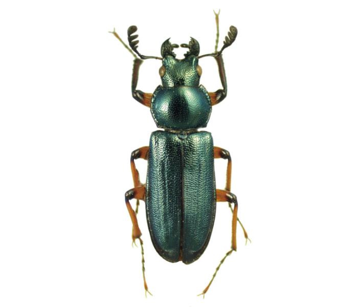 | 選定理由 | 山地性で,ブナ帯では地表のブナ,ミズナラなど広葉樹の枯材に産卵し,幼虫はその中で育つ。前回選定時は,ニセコルリクワガタPlatycerus sugitai Okuda et Fujitaとして掲載されたが,その後分類の知見が変化し,本県産は九州北部に固有の独立種となった。最近,シカの食害等で林内の乾燥が著しいので影響を受けていると考えられるが,特に減少しているという新たな情報はない。 |