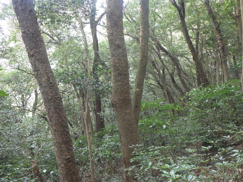 | 選定理由 | 本群落は,ヤブツバキクラス域上部に分布し,県内では普通,標高約600~900mの斜面中部から尾根筋に成立するが,北九州市の帆柱山では標高450m付近に本群落が見られる。宗像市の孔大寺山の標高290m付近にもアカガシが優占する林分があるが,ほかに比べて標高が低い箇所にあり,群落の構成種はミミズバイースダジイ群集に近い。近年のシカ食害の増加によって林床植物の減少,更新の阻害が懸念される。 |