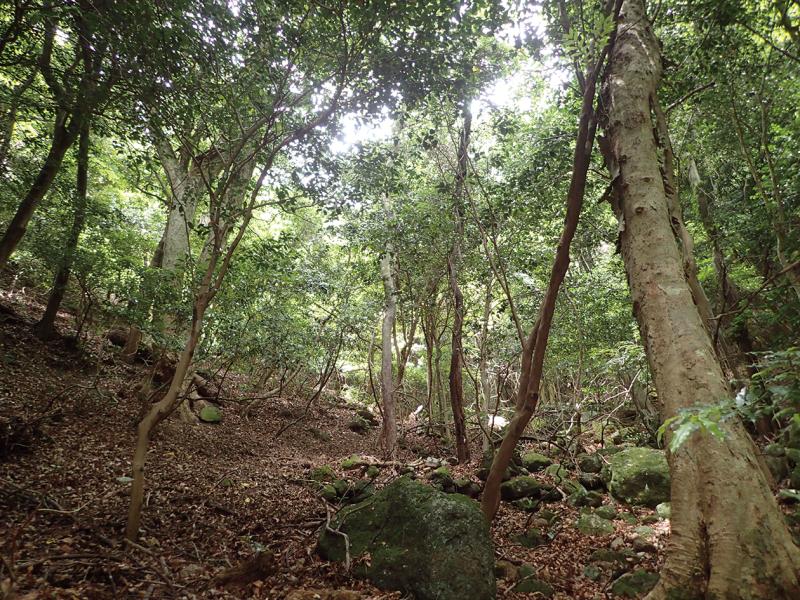 | 選定理由 | 暖温帯下部の山地・丘陵地谷部などに見られる自然植生であるが,県内には2か所,合計1ha程度しか残存していない。シカによる林床植生の食害が一部で見られる。 |