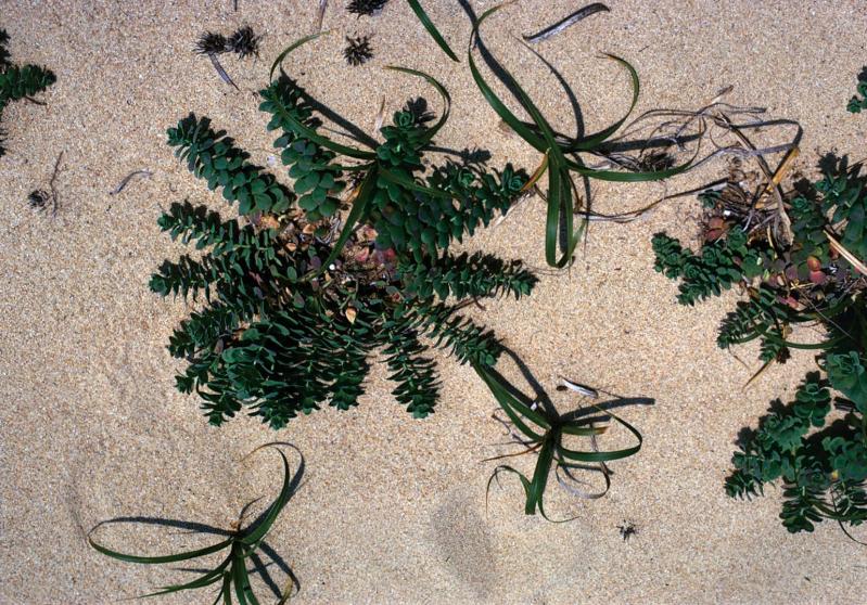 | 選定理由 | 海岸の砂地に生育する多年草。RDB2001,RDB2011ともに情報不足として掲載されている。本種は1975年に福岡市東区海の中道で確認されたが(猪上,1976),1980年代に消滅した。その後,ほかの場所からの確認情報もないため,今回の見直しにおいて,カテゴリーを情報不足から絶滅に変更した。 |
