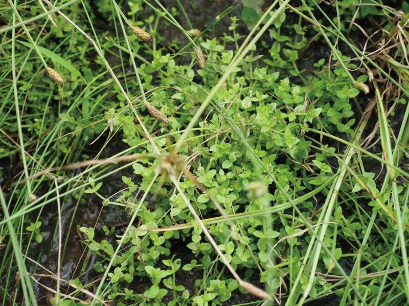 | 種の概要 | 湿地や水田に生育する一年草。茎は直立して軟弱で高さ10~18cm。葉は卵円形,長さ4~10mm,幅3~5mm。8~10月,上部の葉腋に花をつける。花冠は紅紫色で,長さ3~4mm,ほとんど基部まで5裂する。 |