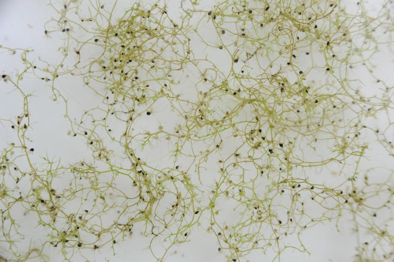 | 種の概要 | ため池や湿地などに生える浮遊性~湿生の小型の一年草または多年草。糸状で水中,地中茎に捕虫嚢をつける。水位が高くなると糸くずのように絡み浮遊する。減水した所では泥中に地下茎を下ろし湿生形を取る。葉の長さは2cm以下。花期は6~12月。 |