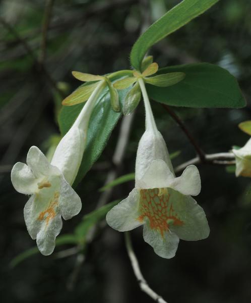 | 種の概要 | 明るく開けた山地の落葉樹林内,岩場,石灰質土壌に生育する落葉低木。高さ2~3mになり,密に分枝する。葉は対生し,広卵形~披針状卵形,葉縁と葉柄には長さ1.2mmに達する白色の開出毛がある。4~5月に共通花柄に2個ずつ黄白色の花を咲かせる。萼片は5個で背側の1個のみほかの裂片より小さい。国内では,本州,四国,九州に分布する。 |