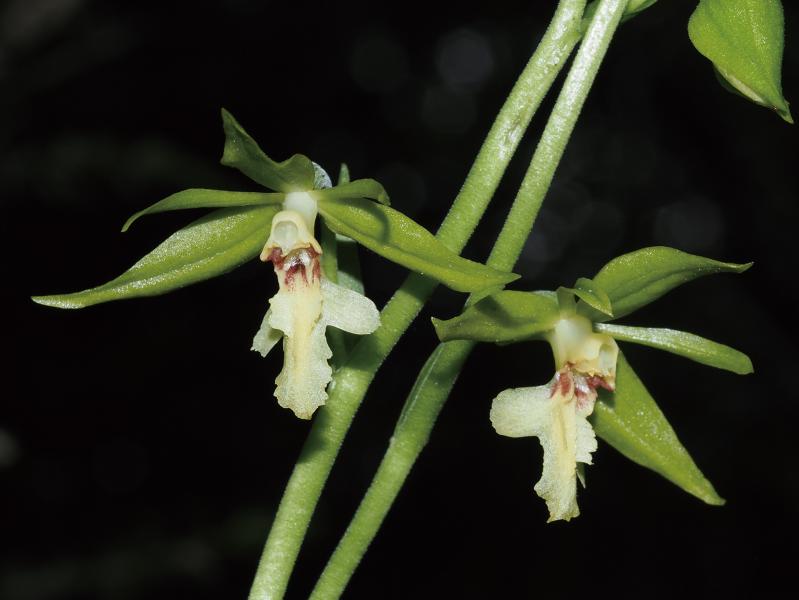 | 種の概要 | 冷温帯の林下に生育する多年草。6~7月に淡黄緑色の花を5~12個ほどまばらにつける。唇弁は3裂してその辺縁は細裂せず,側花弁は線状披針形,距は5~15mmほどで萼片よりも短い。葉は広披針形でエビネよりも細い。国内では,北海道から九州に分布する。 |
