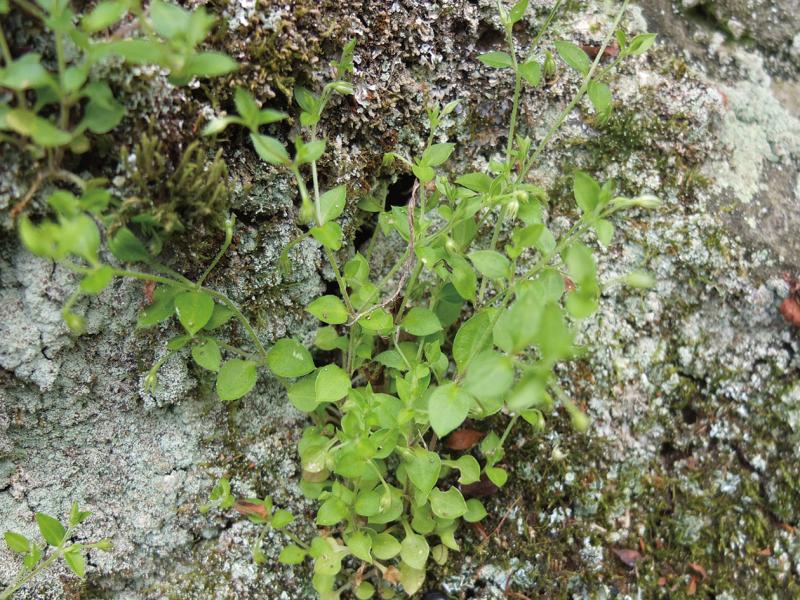 | 種の概要 | やや内陸の住宅石垣や路傍法面などに生える一年草。葉は広卵形で3本のはっきりした脈があり,茎の下部につくものには柄がある。草丈は7~20cm。 |