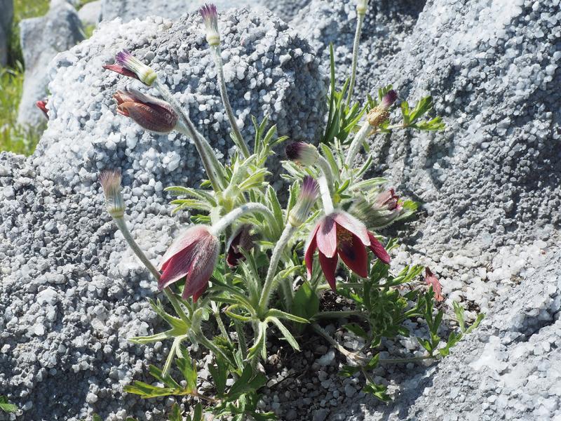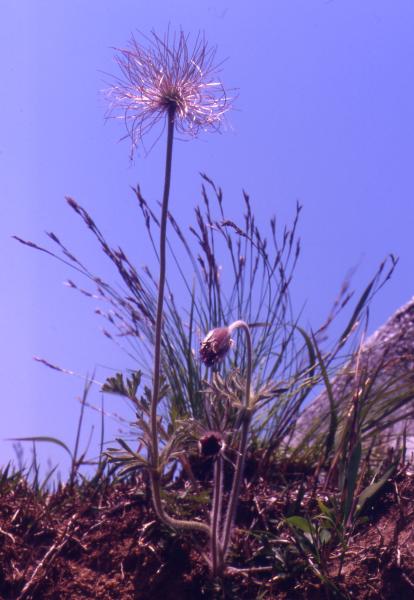 | 種の概要 | 野焼きなどによる二次草地や尾根筋の自然草地など,日当たりがよい低草地~半裸地に生育する多年草。春に暗赤紫色の花が下向きに咲く。 |