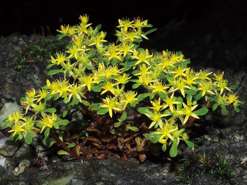 | 種の概要 | 2015年に発見され1),2023年に伊東ほか(Ito et al.,2023)によって記載された新種である。石灰岩生の越年草で,ロゼットで越冬する。ロゼット葉はへら型で互生,1~2cm。茎は基部で分枝して1~数本,高さ2~8cmほど,しばしば赤みを帯びる。茎からは普通発根せず,無花のシュートは出さない。茎葉はへら形~倒披針形で互生,5~6月上旬頃に開花する。花弁は黄色で5個,披針形で4.5~6.5mm。心皮は5個。葯は赤色。日本固有種で現在のところ分布が知られているのは福岡県のみ。 |