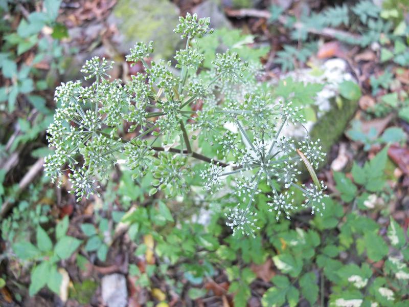 | 種の概要 | 山地の樹陰地や林縁などに見られる多年草。ハナビゼリに似てやや大型,葉は3~4回三出羽状複葉,葉柄は袋状に膨らむ。高さ80~150cm。 |