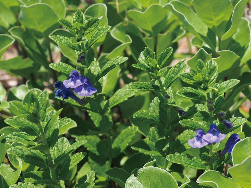 | 種の概要 | 海岸の砂地に生育する多年草。地中に匐枝状の細い地下茎がある。茎は高さ10~50cm,多く分枝し,上向きに曲がった毛がある。葉は対生し長楕円形,縁には低い鈍鋸歯がやや密にあり,葉柄は短い。6~9月頃に上部の葉腋に1個ずつ青紫色の花をつける。花は長さ1.8~2.2cmほど,基部で折れ曲がってほぼ直立する。分果は長さ約1.8mmで半円形,円い小突起がある。国内では,北海道~九州に分布する。 |