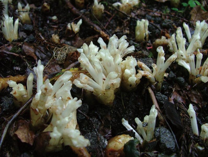 | 種の概要 | 山地の木陰に生え,カシ類,アジサイ類などの木の根に寄生する。苞葉に包まれた芽が地表面で開く。花も地表近くに密集してつき,ラッパ状で先が裂けた花冠が上へ伸びる。苞葉・花とも白色だが,褐変しやすい。花期は6~7月。和名は千葉県清澄山で採集され,花がウツボグサに似ていることによる。 |