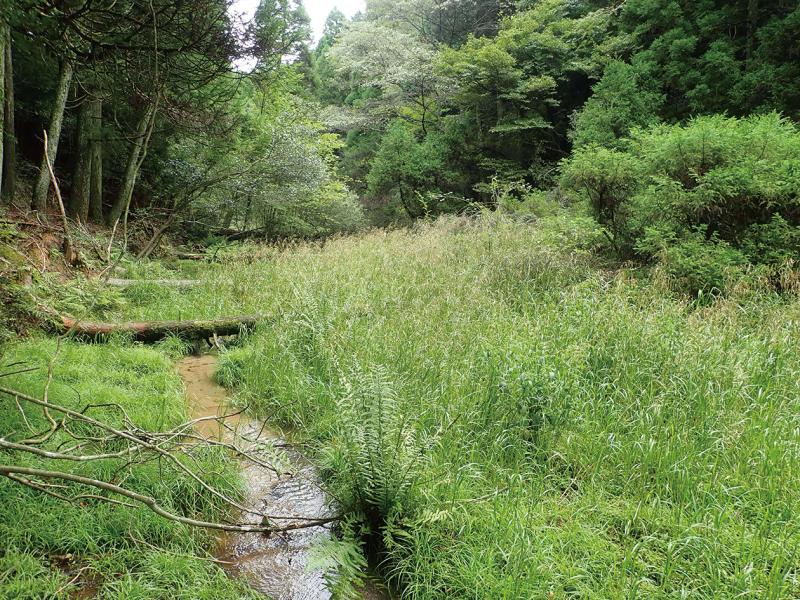 | 選定理由 | 朝倉市(旧甘木市)でのみ確認している。暖帯上部域の小渓流に見られ,5×50mくらいの範囲に群生している。この地域はシカ生息密度の高い場所であるが,自生地がぬかるむため侵入を免れている。しかし周辺に植林されたスギによる被陰や伐採時の損傷が懸念される。福岡県植物目録(1952)には志賀島,能古島,脇山,南畑などが挙げられているが,これはいずれも標高の低い場所であり,その後1989年に記載されたマンゴクドジョウツナギ(Masumura, 1989)の可能性がある。 |