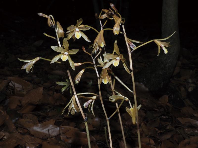 | 種の概要 | 暖温帯~亜熱帯の常緑広葉樹林,落葉広葉樹林,アカマツ林などの林床に生育する多年草。根は地中に深く伸び,地上茎は分枝せず30~40cmほど,数個の鞘状の苞葉をまばらにつける。5~6月頃に開花し,花は長さ15~25mmで黄褐色~紫褐色など変異が大きい。唇弁は3裂し,中裂片の内面には黄色の長毛が密生する。花は天候や時間帯によって開かない場合がある。国内では,本州(岩手県以南)~琉球に分布する。 |