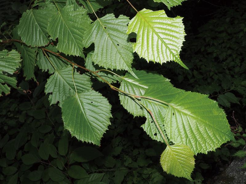 | 種の概要 | 暖帯上部~温帯域の主に谷沿いに生える落葉低木。葉は広卵形で縁に粗い鋸歯があり,特に先は長くとがる。花には萼や花弁がなく,多数垂れ下がる雄ずいが赤褐色で目立つ。樹高は3~5m。 |