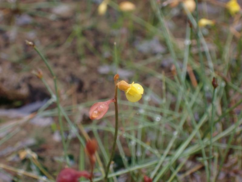 | 種の概要 | 湿地や池沼辺に生える小型の多年草。地下茎にまばらに捕虫嚢をつける食虫植物である。花茎は5~15cmで,黄色の花を1~10個つける。花期は7~10月。 |
