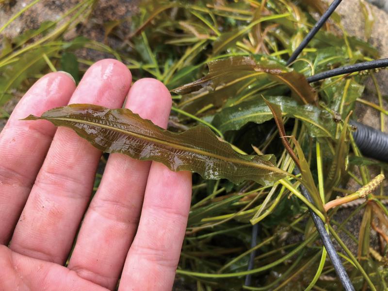| 種の概要 | 河川や水路などに生える沈水性~浮葉性の多年草。沈水葉は葉柄2~10cm,葉身は狭披針形で長さ8~12cm,幅1~2.5cm,葉先は鋭尖頭で細く突出する。葉縁は微鋸歯があり波打つ。浮葉は沈水葉と同形かやや幅広。花期は7~9月。 |