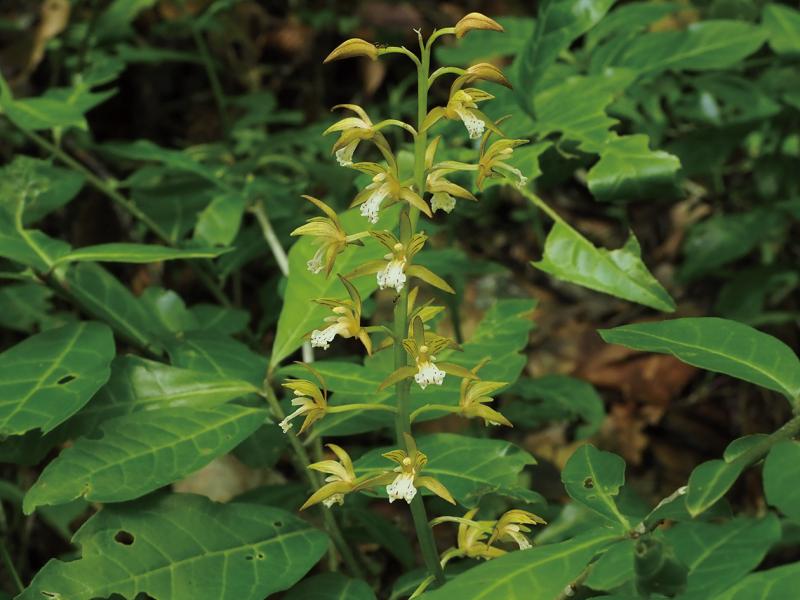 | 種の概要 | 亜寒帯~冷温帯の林内のやや湿った場所に生育する多年草。茎は球状で連珠状に連続し,葉を普通2個つける。葉は披針形で長さ20~30cm,幅1~3cm。花茎は高さ30~40cmで5~7月に多数の黄褐色の花を総状につける。萼片と側花弁は披針形で長さ8~10mm。唇弁は萼片と同長,白色で斑点があり,基部近くで3裂し,基部に2本の隆起線がある。国内では,北海道~九州に分布する。 |