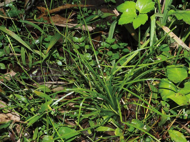 | 種の概要 | 山地の湧水性の止水域や緩流域において,抽水状態から沈水状態で生育する夏緑性のシダ植物。従来シナミズニラとされた種は,4倍体種がシナミズニラ,6倍体種がオオバシナミズニラに分類された。一般的に,両種は孔辺細胞や小胞子の長さなどによって区別することができるとされるが(Takamiya et al., 1997),本県には中間的で識別が困難な個体群も存在する。国内では,佐渡島,四国,九州に分布する。 |