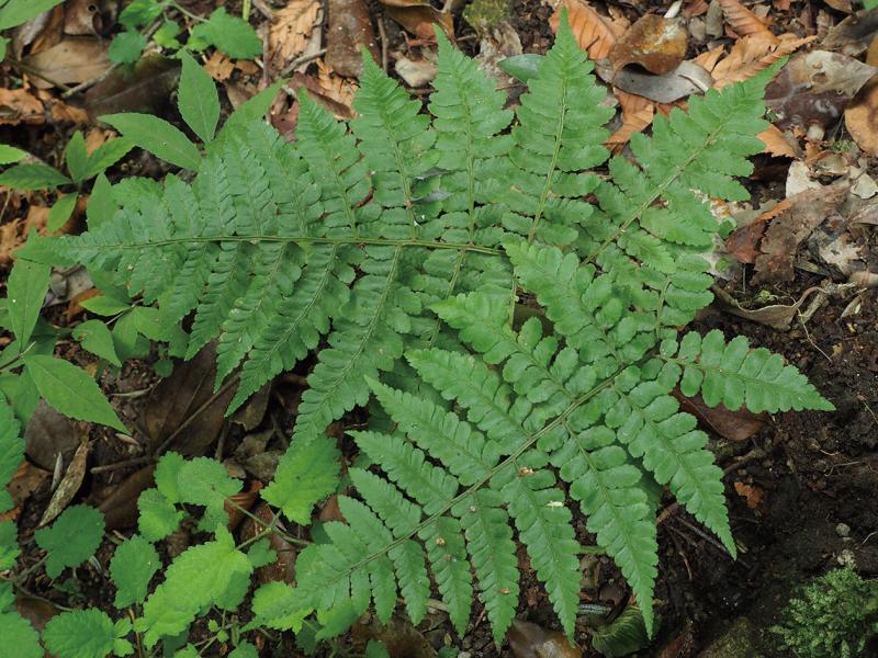 | 種の概要 | 山地の湿潤な林床に生育する夏緑性のシダ植物。ハコネシケチシダ複合体の構成種の一つで,2倍体のイッポンワラビと2倍体型のシケチシダの雑種起源とされる異質4倍体種であり,2020年に記載された(Hori,2020)。不稔性雑種のハコネシケチシダに酷似するが,本種は小羽片の切れ込みがやや浅く,定形の胞子を産生する有性生殖種である。本種と4倍体型シケチシダが交雑したニセヒメシケチシダも県内では確認されている。 |