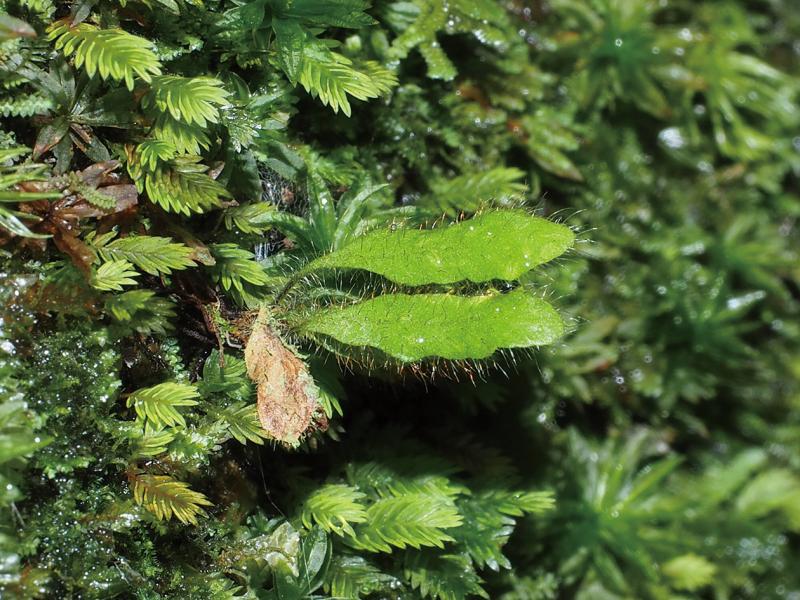 | 種の概要 | 山地の樹冠や岩上に着生する常緑性のシダ植物。根茎は斜上する。葉の表面に褐色の毛が密生する点,葉が紙質である点,胞子嚢に1~3本の長い毛を生じる点が特徴である。国内では,本州,四国,九州に点在する。 |