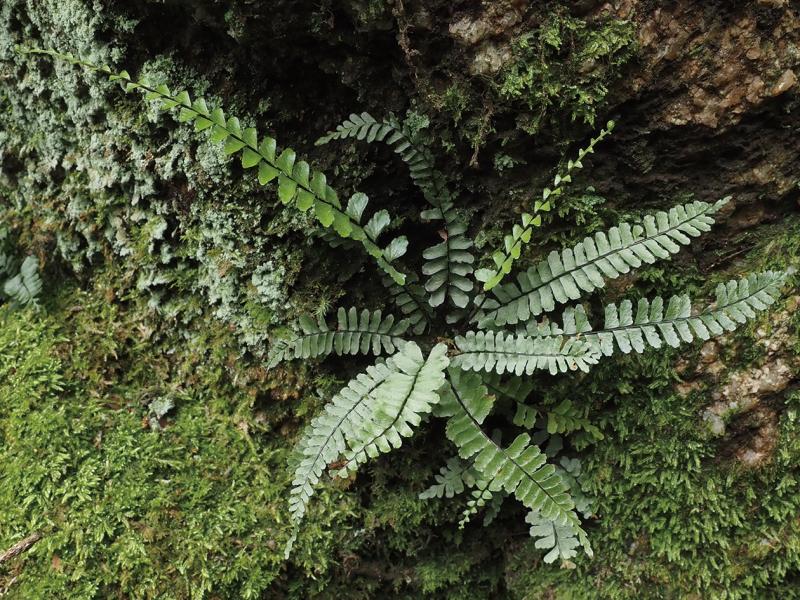 | 種の概要 | 岩上に着生する常緑性のシダ植物。かつてはヌリトラノオの一型とされたが,不稔性の種間雑種シモダヌリトラノオを形成することから独立種とされた。根茎は斜上~直立し,葉柄は紫褐色。1回羽状複生の葉をつけ,葉は紙質で緑色。葉の先端には無性芽を生じない。ソーラスは羽片のやや辺縁寄りにつく。国内では,本州(関東以西),四国,九州に分布する。 |