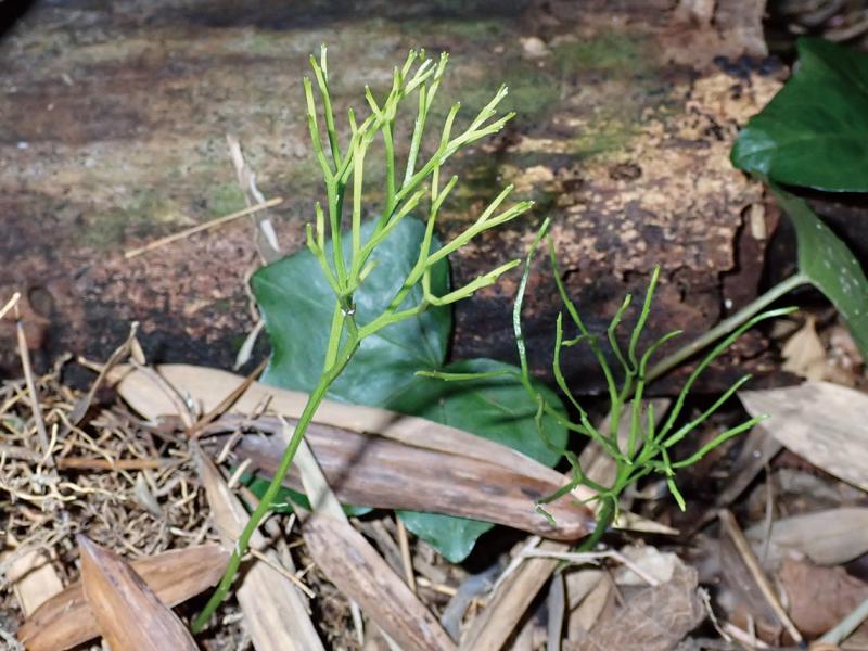 | 種の概要 | 地上,岩上,樹上に生育する常緑性のシダ植物。地下茎は菌根性で二叉分枝または側方分枝を繰り返して伸長し,地上茎は二叉分枝する。葉は痕跡的な突起状構造であり,根も持たない。胞子嚢群は3個の胞子嚢が癒合して単体胞子嚢群を形成する。国内では,本州,四国,九州,琉球,小笠原諸島などに分布する。 |