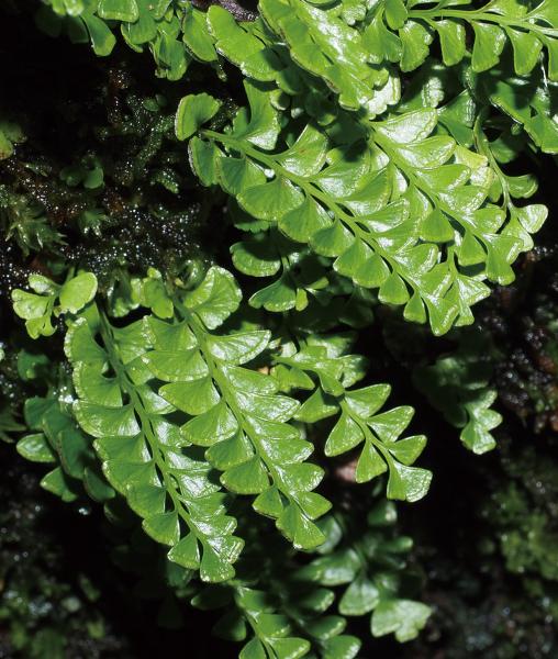 | 種の概要 | 渓谷の水際の岩壁などに着生する常緑性のシダ植物。根茎は短くはい,着生基盤に強く固着する。葉身は1回羽状複生。葉は厚い草質で黄緑色。ソーラスは側羽片の先端(上側)の辺縁寄りにつく。国内では,本州(伊豆諸島・伊豆半島以西),四国(愛媛県),九州に分布する。 |