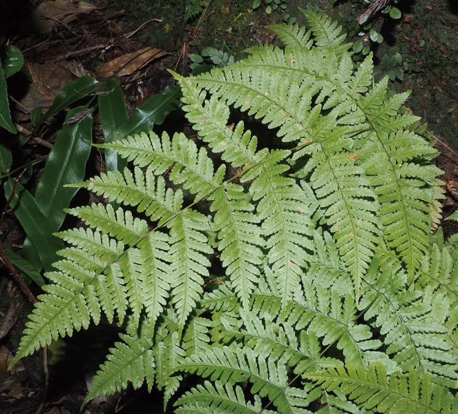 | 種の概要 | 山地の空中湿度の高い林下に生育する常緑性のシダ植物。国内に分布するものは無融合生殖種とされる。根茎は斜上し,葉柄の基部には密に黒褐色の鱗片をつける。ソーラスは中間生であり,包膜をつけない点が近縁種との特筆される違いである。県内に分布する近縁種としてヌカイタチシダモドキにやや類似するが,ヌカイタチシダの側羽片は中軸に対して開出せずに斜上する。国内では,本州(埼玉県以西)~琉球列島に分布する。 |