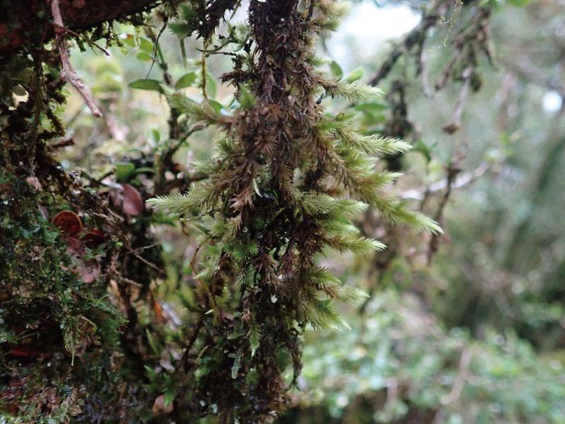 | 種の概要 | 山地の樹幹上,稀に岩上に生育する。イタチゴケ属の蘚類に似ているが,葉に中肋があることで区別できる。古処山と英彦山では最近の調査でも生育が確認されているが,沖ノ島での現状は不明である。 |