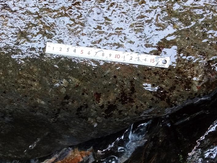 | 選定理由 | 湧水群や河川上流部,貧栄養の渓流中の礫や岩盤上に円盤状の斑点を形成するように着生する淡水褐藻である。淡水紅藻のタンスイベニマダラ(RDB2024情報不足)と一緒に見つかることがある。藻体が小さく,また生育量も多くないためか,おそらく気づかれていないだけで,本県のほかの河川にも分布していると推察される。今回は情報不足とし,今後の分布調査でカテゴリーを判断したい。 |