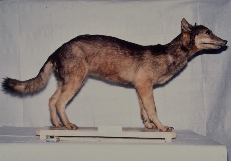 | 選定理由 | 本州以南に生息していた種はオオカミの亜種C. l. hodophilaxとする立場と,独立種ニホンオオカミとする立場がある。一般には,1905年奈良県での捕獲が最後で絶滅したとされる。筑前国続風土記(1709)に「国内処々に多し」とされ,筑前国産物帳(1736)にも記載があり,1700年代には広く分布していたと考えられる。 |
