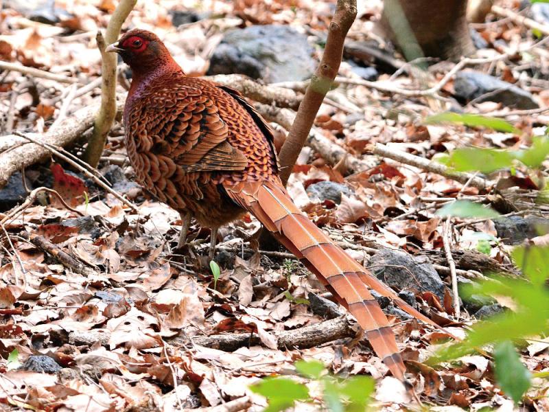 | 選定理由 | 県内各地の山地に留鳥として生息する。生息密度の地域差はあまりないように感じられる。狩猟鳥ではあるが,ヤマドリ・キジを撃つ狩猟者が減っているためか,年間狩猟数は50羽程度で,狩猟による影響はあまりない。一方,狩猟者への聞き取りによると,猪・鹿猟を行う際に山で出会うヤマドリはかなり減っていると感じられるとのこと。ニホンジカ増加に伴う下層植生の変化や地面を掘り返すイノシシによる繁殖阻害などの影響を受けている可能性がある。カテゴリー判定基準:a),b)。 |