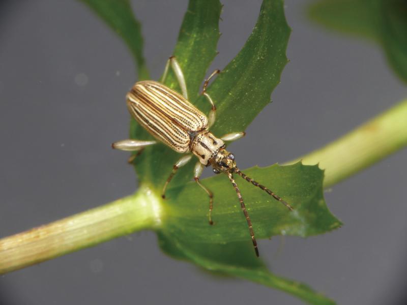 学名:Macroplea japana (Jacoby, 1885)Myしおりとは、あとでもう一度閲覧したい種の解説ページを保存し、いつでも見直すことができる機能です。このボタンを押すことで本解説ページをMyしおりページにブックマークし、Myしおりページへ移動します。
