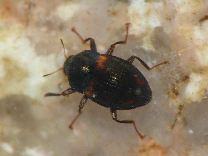| 種の概要 | 体長約2.3mm。背面は黒褐色で,上翅には暗赤褐色の斑紋があるが,目立たない個体もいる。河川上流域や丘陵地細流の瀬に生息し,水質が良好な環境を好む。生活史の詳細は不明だが,成虫は一年中確認されている。タイプ産地は小倉(現北九州市)。 |