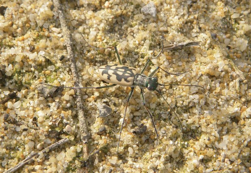 | 種の概要 | 体長16mm内外,背面は緑銅色,上翅の点刻は青緑色に光る。上翅の白紋はよく発達するが個体変異が大きく,周辺部のみ白色の個体や,背面の大部分を被う個体もある。海岸砂丘と大河川の河口付近の砂地河川敷に生息する。北海道から九州,国外では済州島,朝鮮から中国からシベリアに分布する。 |