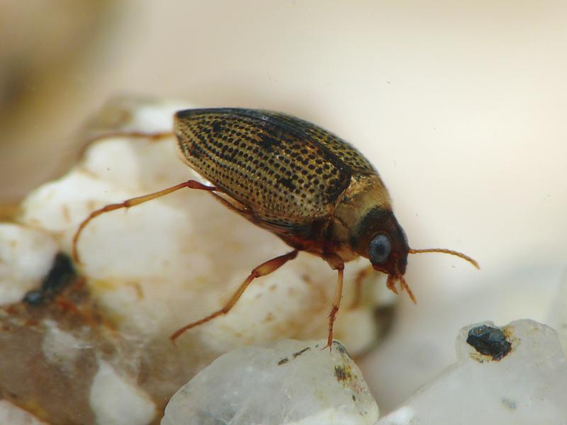 | 種の概要 | 体長約3.0mm。頭部は赤褐色で,前胸背と上翅は黄褐色。上翅には黒斑がある。植物が豊富な池沼や河川の淀みなどに生息し,水質が良好な環境を好む。生活史の詳細は不明だが,幼虫は春に出現しアオミドロ類を食べて成長する可能性が高い。成虫で越冬するものと思われる。 |