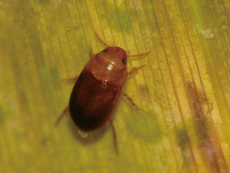 | 種の概要 | 体長約2.2mm。背面は黄褐色で,上翅は暗色。植物が豊富な止水域に生息し,やや遷移が進んだガマ類やマコモ類の根際などの基質中にもぐりこんでいる。生活史の詳細は不明。1990年代から存在が知られているものの,現在のところ学名未決定。 |