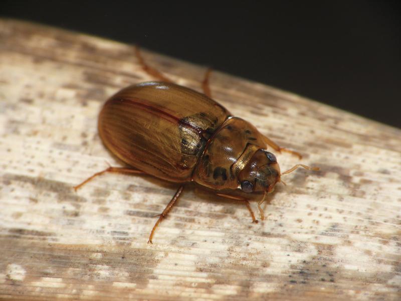 | 種の概要 | 体長6.2~7.0mm。背面は黄色味の強い黄褐色。上翅には条溝列がない。岸際にヨシ帯の発達する止水域に生息し,僅かに塩分が混ざる海岸沿いの環境を好む。生活史の詳細は不明。成虫は周年みられる。 |
