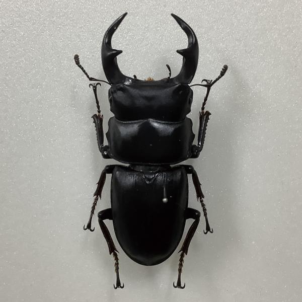 | 種の概要 | 雄の体長は21.0~76.6mm。雌は22.0~48.0mm。体色は黒色。雄では,大型個体は体全体に艶を欠くが,体サイズが小さくなるにつれて光沢が増し,上翅の点刻も明確になり,小型個体では縦条を形成する。雄の大あごは太くてゆるやかに弧状に曲がり,大型個体では,斜め上方をむく1本の内歯が中央付近から突出し,小型から中型個体では三角型状の内歯が内側に突出する。雌は光沢が強く,上翅には12条の点刻列からなる縦条がある。 |