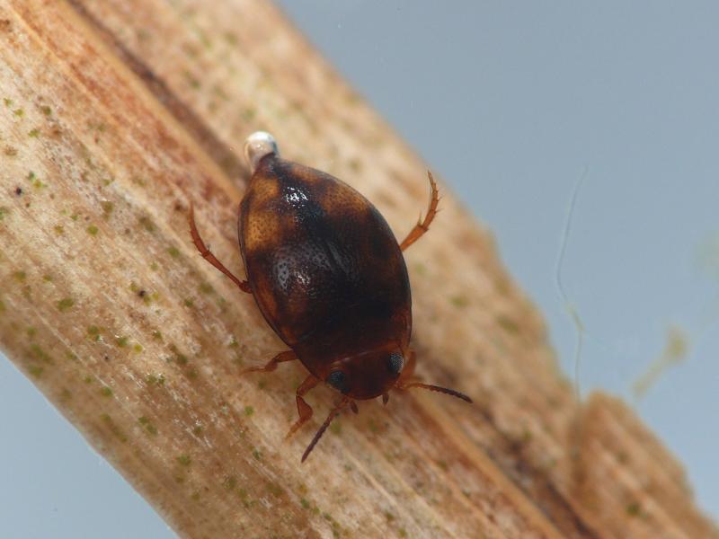 | 種の概要 | 体長約1.8mm。背面は黄色味のある暗赤褐色。上翅には黒褐色の模様がある。植物が豊富な止水域に生息し,水質が良好な浅い環境を好む。生活史の詳細は不明だが,幼虫は春から初夏に観察されている。成虫は周年みられる。 |