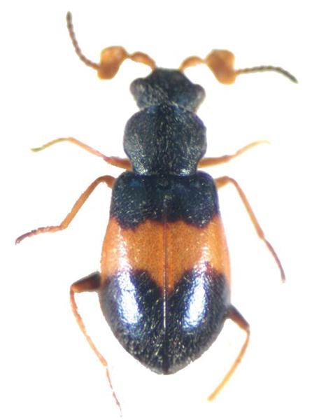 | 種の概要 | 体長3.5mm内外。触角の一部,脚,上翅の横帯はやや赤みかかった黄色。雄の触角第3節はハート型に広がる。雌は後翅を欠く。詳しい生態は不明である。 |