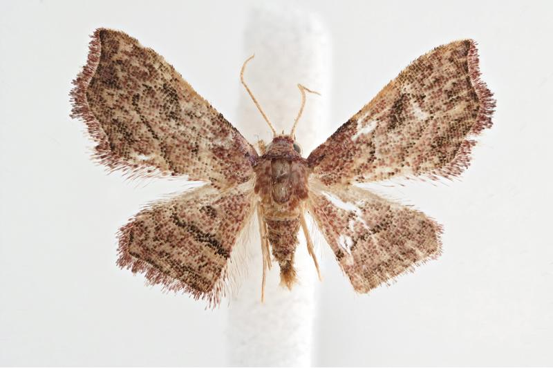 | 種の概要 | 前翅長は約6mmと日本産ベニコヤガ亜科で最小の種である。成虫は5~9月に採集されている。幼虫は粉状地衣類を摂食し,粉状地衣類を身にまとって擬態する。 |