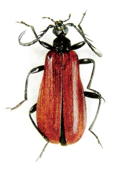 | 選定理由 | 本種は山地性で,英彦山と釈迦岳のブナ帯原生林において花上や倒木などにみられ,灯火に集まる。幼虫は倒木の樹皮下などにみられるので,シカの食害による山林の乾燥により影響を受ける可能性がある。多くはないが,継続してブナ帯とその下部でみられるのでランクを下げた。 |