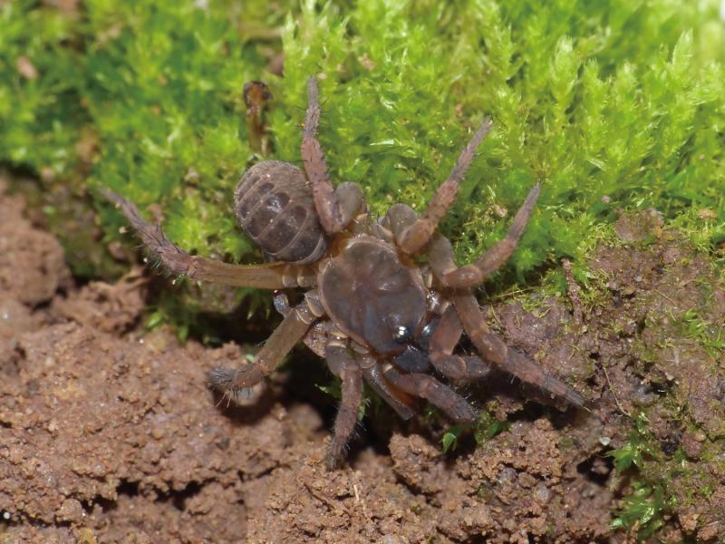 | 種の概要 | 体長は10~15mmで,雄の方が小型。背面は褐色で,歩脚は太い。触肢が発達しているため,脚が5対あるように見える。腹部の背面にやや硬化した背板が並ぶ。崖地などに横向きまたは斜め下向きに穴を掘り,入り口には土やコケを付着させた片開きの蓋をつける。九州におけるキムラグモ属の分類には不確定な部分が残るが,少なくとも本種については有効なタクソンであると考えられる。 |