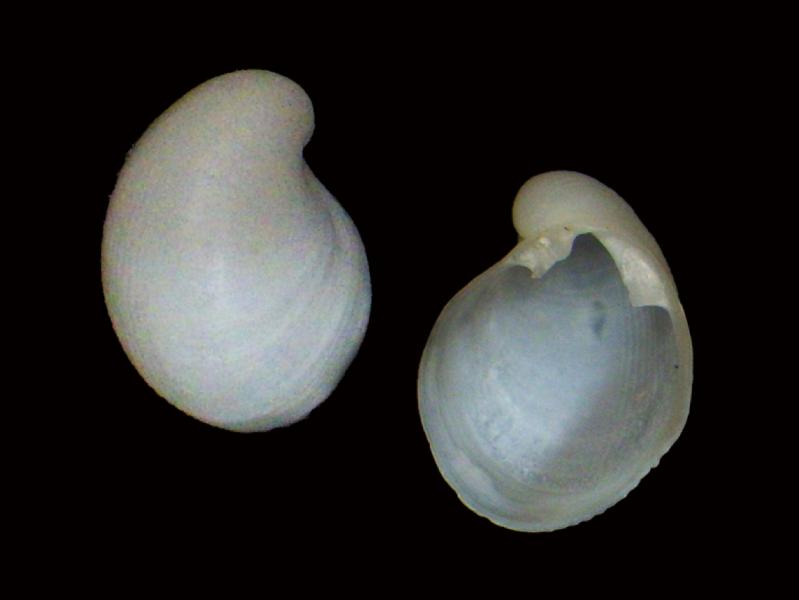 | 種の概要 | 殻高20mm,合弁を前からみるとハート形で,膨らみが強く,殻頂は著しく巻き込む。薄質,白色で薄い黄色の殻皮を持つ。房総・能登半島から九州,中国大陸沿岸,台湾,インド・西太平洋に分布。 |