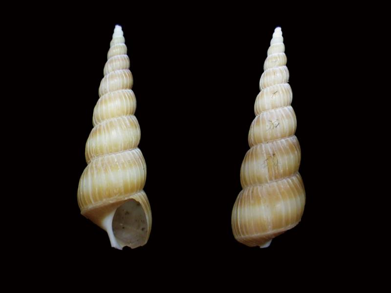 | 種の概要 | 殻長45mm,塔形,薄質。縦肋は細糸状で,茶褐色の太い色帯を持つ。房総半島から中国,朝鮮半島,中国大陸,インドネシアに分布。 |
