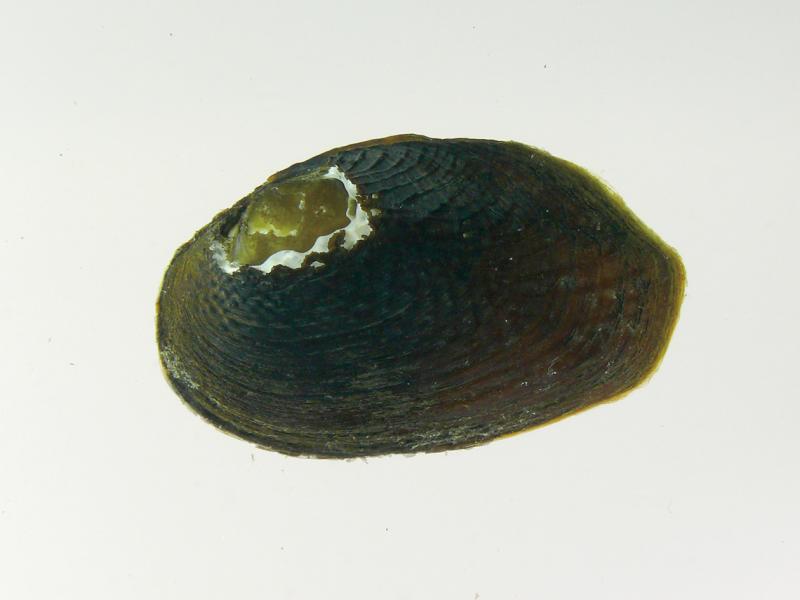 | 種の概要 | 殻長90mm。殻は卵円形で膨らみは弱く薄い。殻表面には逆V字状の立体的な模様があり,放射状の肋も顕著。砂礫から砂泥底の流水の水路や小河川に生息する。繁殖期は春から夏で,幼生はオイカワ,カワムツ,ドジョウ,ヨシノボリ属の鰭と鰓に寄生する。日本産マツカサガイには3系統が認められ,県内に分布するのは「広域分布種」とされる。本州・四国・九州に分布。なお,この系統は真のマツカサガイP. japanensisではないことも報告されているが,ここでは従来通りマツカサガイとして掲載する。 |