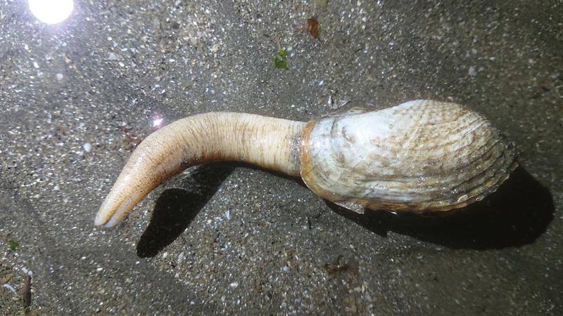 | 種の概要 | 殻長120mm,殻は薄く欠けやすい。水管が非常に太く長く発達するのが特徴。内湾などの泥底・砂泥底に生息する。北海道南部以南から九州,ロシア日本海沿岸,朝鮮半島,中国大陸沿岸に分布。 |